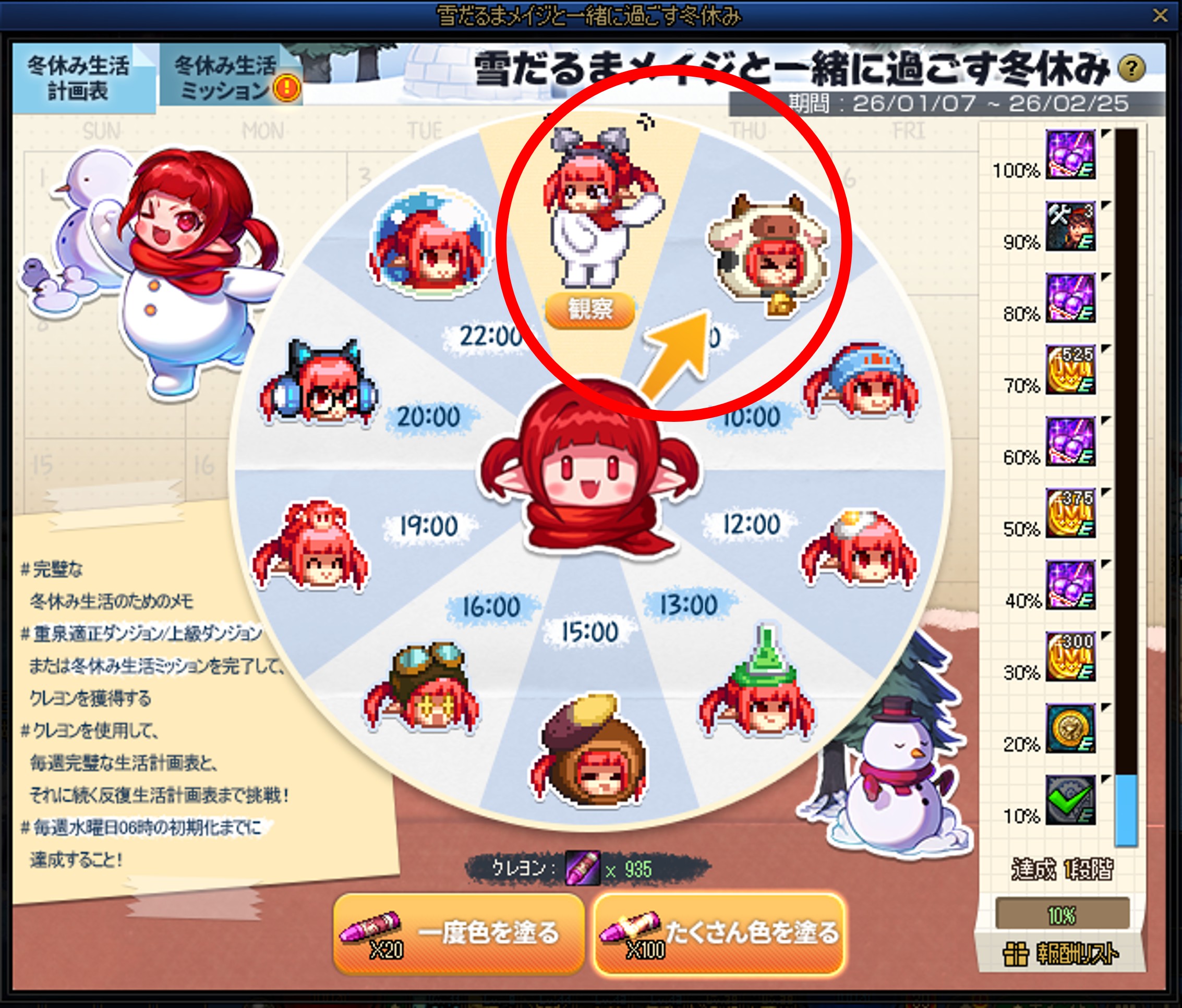 ※冬休み生活計画表と雪だるまメイジクレヨンの所持数は、毎週水曜日06時に初期化されます。