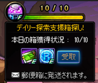 重泉地域の適正レベルダンジョンでデイリー探索支援箱10回獲得 | ※毎日1回獲得可能(午前06時に初期化) |