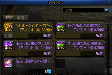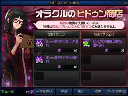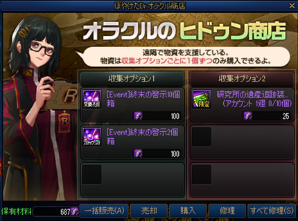※ぼんやりとしたDr.オラクル商店の収集オプションBは週に10回だけ購入できます。