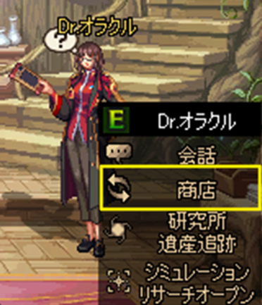 Dr.オラクル商店はセリアの部屋のNPC「Dr.オラクル」のメニューから入場できます。