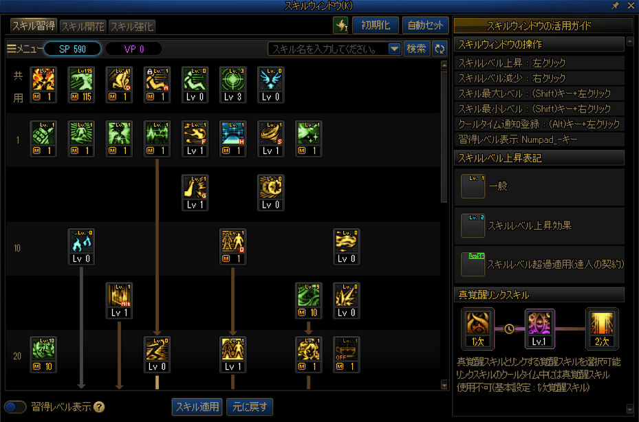 35~80Lvアクティブスキル - 1次覚醒スキルを除く(関連スキルで関連オプションを提供) |