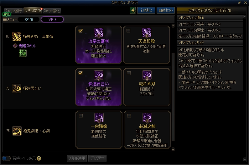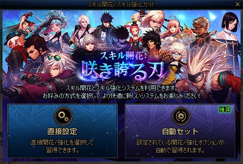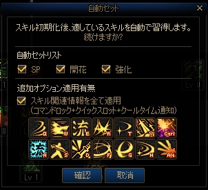 - 「自動セット」を選択すると、転職/職業別に設定されたオプションが自動で習得できます。