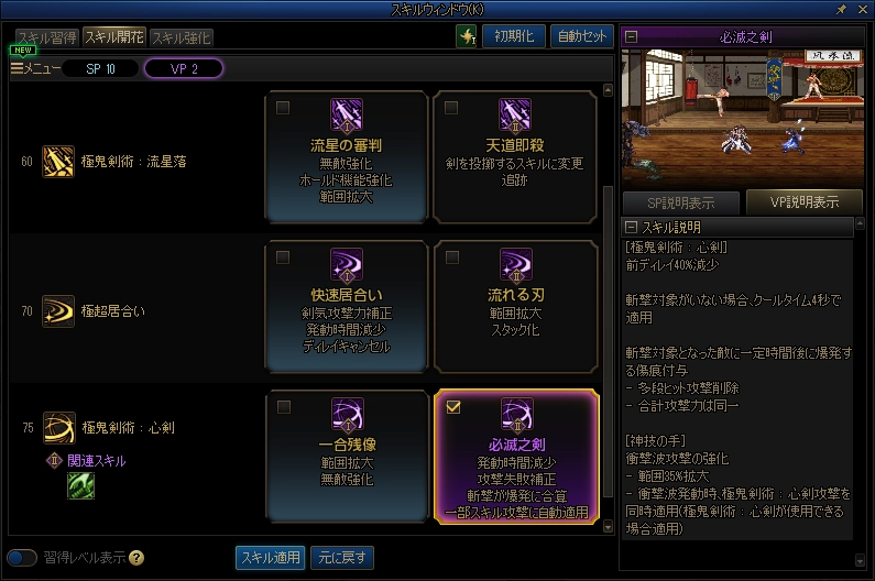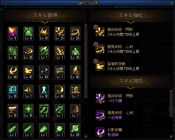 ∟自動セットを通じて変更されたスキル習得/スキル強化/スキル開花情報を一目で確認できるように、結果画面が変更されます。