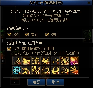 ∟各項目をチェックしてスキルコードを読み込む範囲を指定できます。