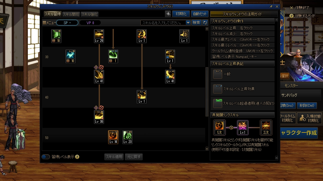 - スキル習得タブは既存のスキルツリーと同じ情報を提供します。