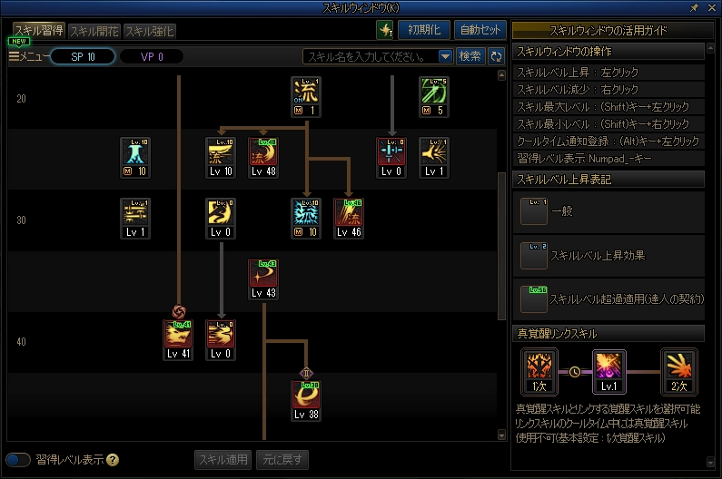 VPオプション操作 スキル開花オプション操作に関する機能をガイドします。 スキルウィンドウ内の開花スキル項目が選択されていない場合、ガイド画面が表示されます。 |