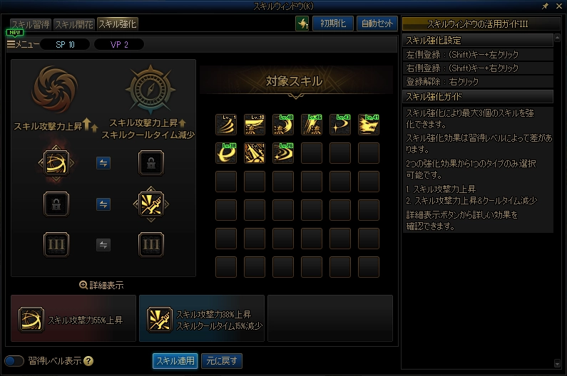 スキル強化ガイド スキル強化システムに関する機能をガイドします。 |