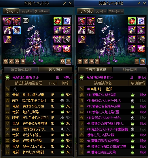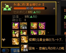 ・装着装備及び融合情報で現在適用中のセットの装備ではない場合、アイコン及びセットポイント数値に非活性カラーが適用されます。