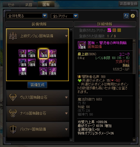 ・上級ダンジョン固有装備の分類では、装備生成機能から装備を生成できます。