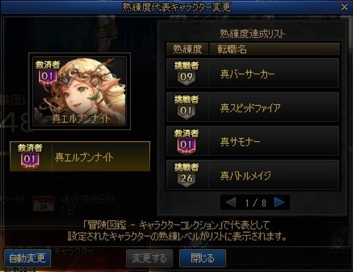 - 冒険図鑑 - キャラクターコレクションで代表に設定したキャラクターが変更リストに表示されます。