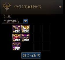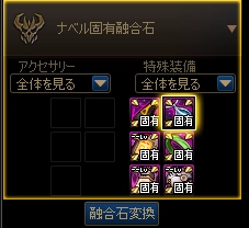 - ヴェヌス固有融合石とナベル固有融合石の分類では、各カテゴリーごとの選択及び融合石変換が可能です。