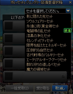 ・武器庫のセット情報からセット装備または固有装備を選択し、確認できるように変更されます。