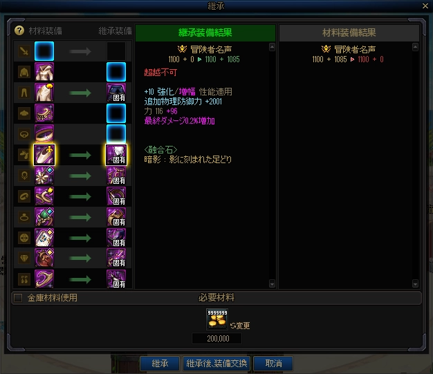 - 継承後に装備交換機能を利用すると、継承完了後すぐに装備が着用されるようになります。