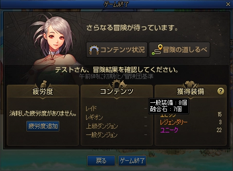 - 獲得装備の数量集計が115レベル以上の獲得を基準に変更されます。