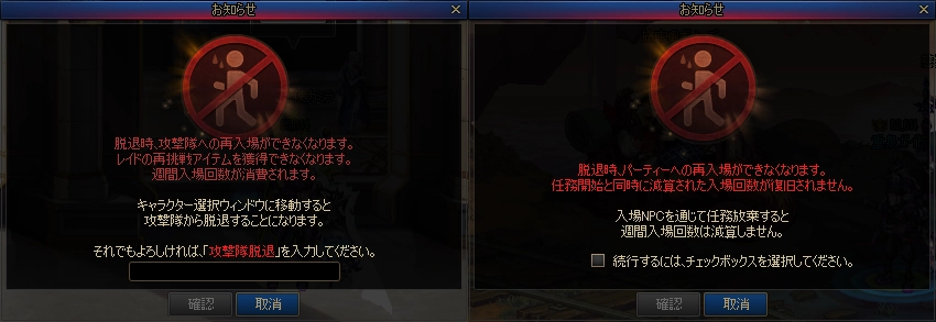 - 上級ダンジョン、レギオン、レイドでパーティー脱退時、機会減少の通知が強化されます。