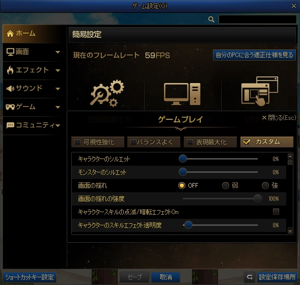 ・簡易設定で保存すると、アカウント内の全てのキャラクターに一括適用されます。