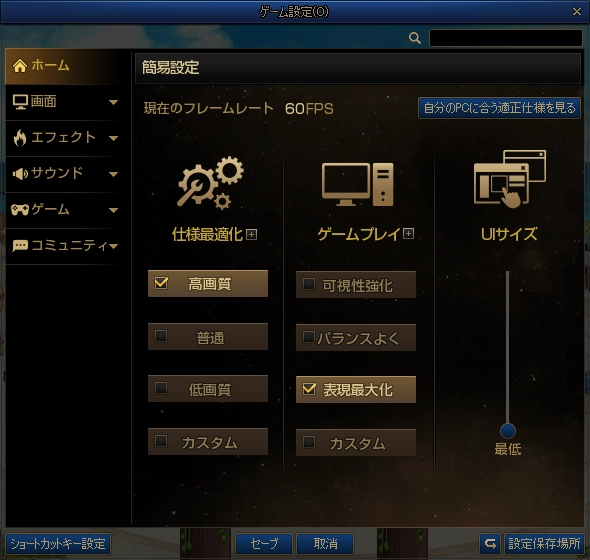 - 「仕様最適化」、「ゲームプレイ」、「UIサイズ」などのオプションを一つの画面で簡単に設定できる機能が追加されました。