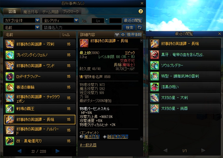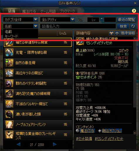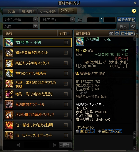 ・百科事典にブックマークした装備も武器庫にお気に入り登録した場合と同じくドロップ後のエフェクト効果が追加されます。