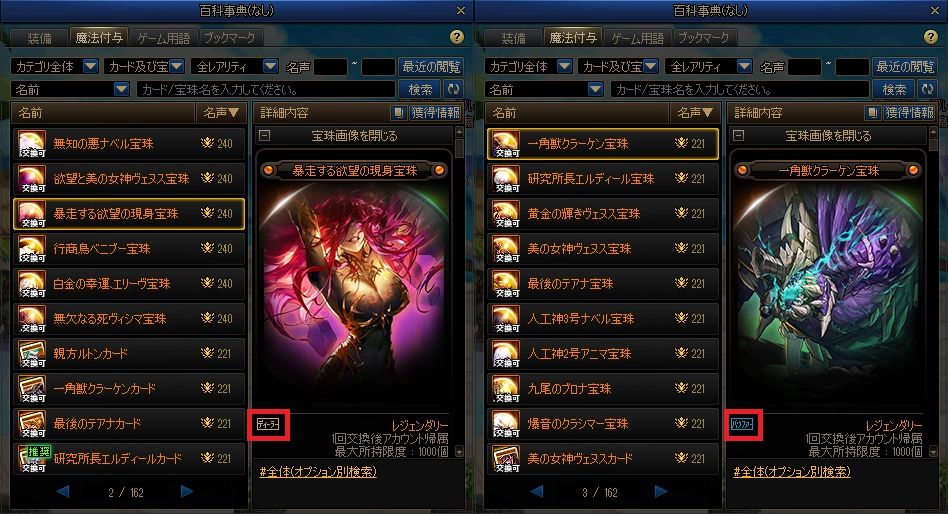 -ユニーク等級以上の魔法付与カードにはディーラー用/バッファー用のマークが表示され、状況に合ったカードを簡単に見分けられるようになります。(一部のイベントから獲得したカード及びパッケージで獲得した宝珠の場合は除外されます。)